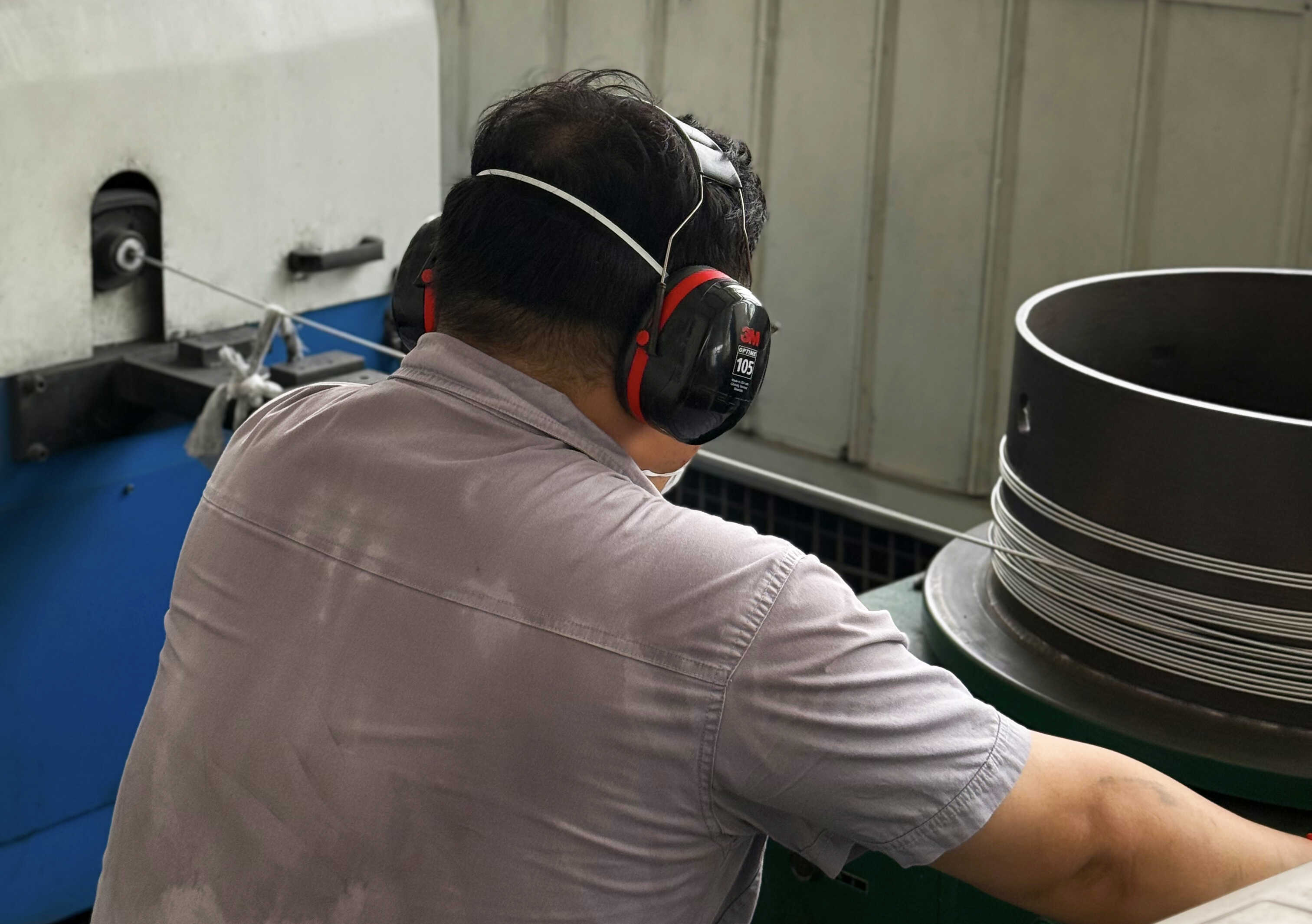????熱浪裹挾廠房,鏈胚通紅滾燙,絲材鏈拉工在機器間搏擊高溫,火鉗在蒸騰熱浪中穩如磐石,血肉之軀對抗灼灼暑氣,拉出堅韌工業筋骨。他們嚴守規程,細摳每處細節,用堅守鑄就品質。