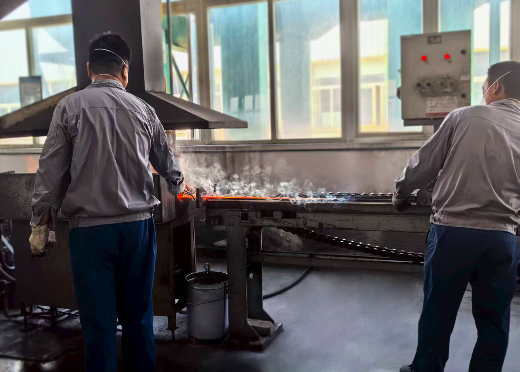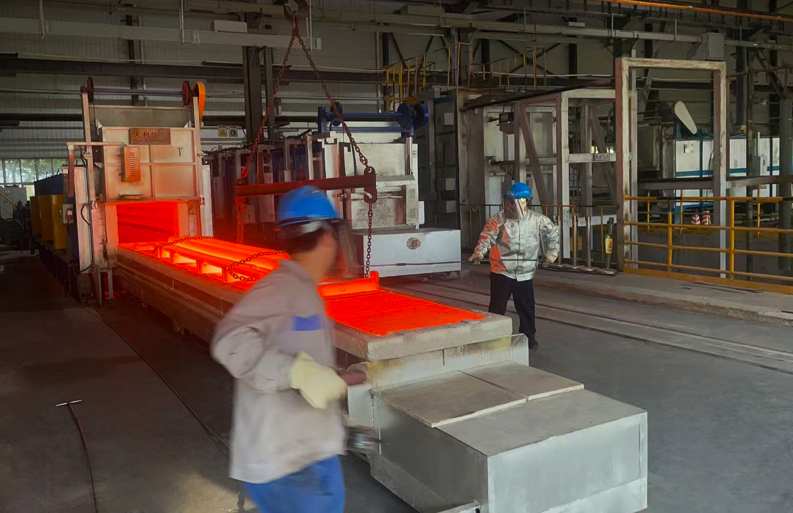 ????熱處理材料出爐的瞬間,操作工們如箭沖刺,與秒針爭奪入水的時限。千度熱浪織成無形的火籠,工裝下的每一寸皮膚都在灼燒中戰栗,但他們的腳步未曾遲疑,只因肩頭壓著淬火成鋼的使命,重若千鈞。